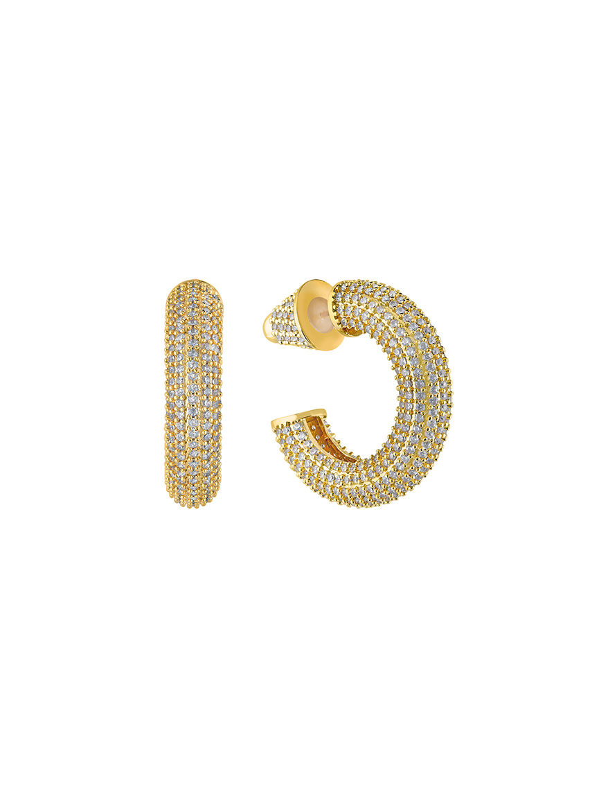 The boldest expression of the Parvin series, designed to turn heads. With its oversized sculptural volume and full micro zircon setting, this hoop is made for after-dark styling and fearless glamour.